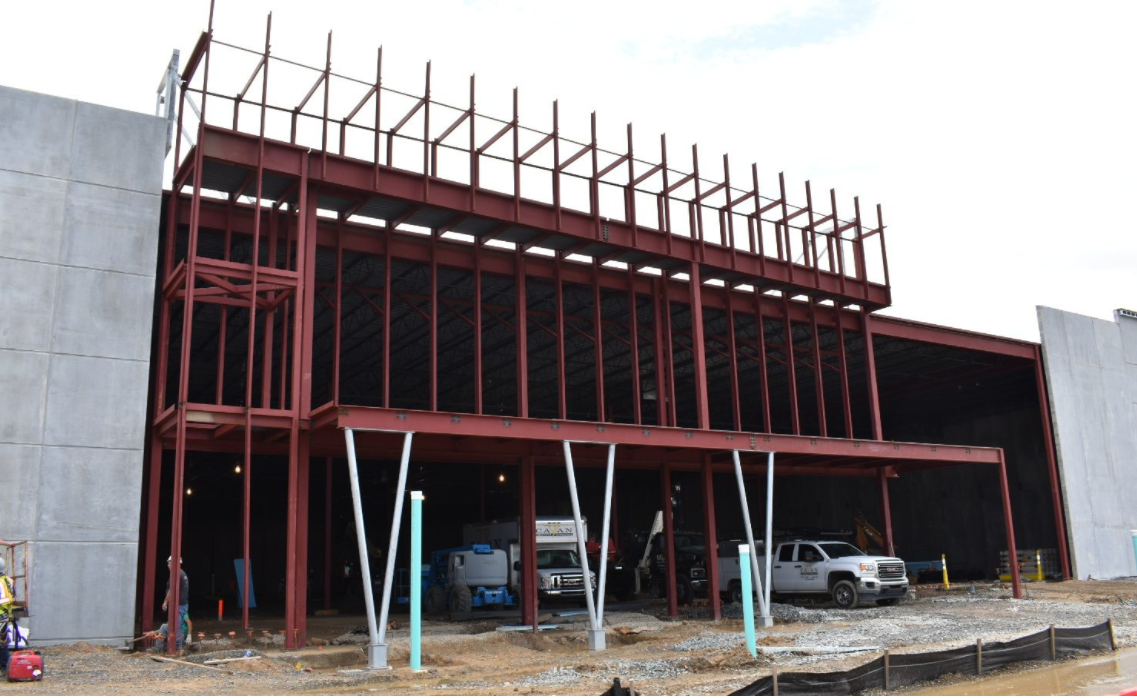 Main Event Entertainment Center at the Christiana Fashion Center, Delaware. This is a throwback project from our structural engineering department. Steinle Construction Engineers (SCE) a Division of VanDemark & Lynch utilized precast insulated exterior panels for the building shell for quick erection time that also provided the perimeter gravity bearing system and the lateral load system for the structure. This brought value to the job by reducing the complexity of interior connections and utilizing lighter columns. The custom front elevation was designed with steel and light gage to give the building owner future flexibility